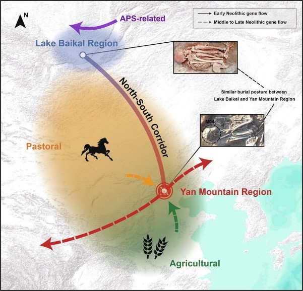 吉林大学崔银秋教授团队联合河北省文物考古研究院、中山大学,韩国首尔大学以及俄罗斯伊尔库茨克国立大学合作于11月7日在《Science Bulletin》上发表题为 “Ancient DNA reveals long distance interactions in agropastoral border zone of Yan Mountain Region” 的研究论文。该研究最重要的突破在于,通过西伯利亚贝加尔湖地区与中国北方燕山地区新石器时代的42个古人类基因组,揭示了7700年前两个地区间存在的一条史前“南北互动廊道”,并填补了红山文化和夏家店下层文化之间的古老基因组分析空白;强调了燕山地区是黄河与西辽河地区间史前人群互动的关键区域。